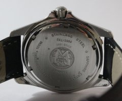 Кварцевый механиз, сапфировое стекло, стальной корпус, кожаный браслет, 37мм, 100м