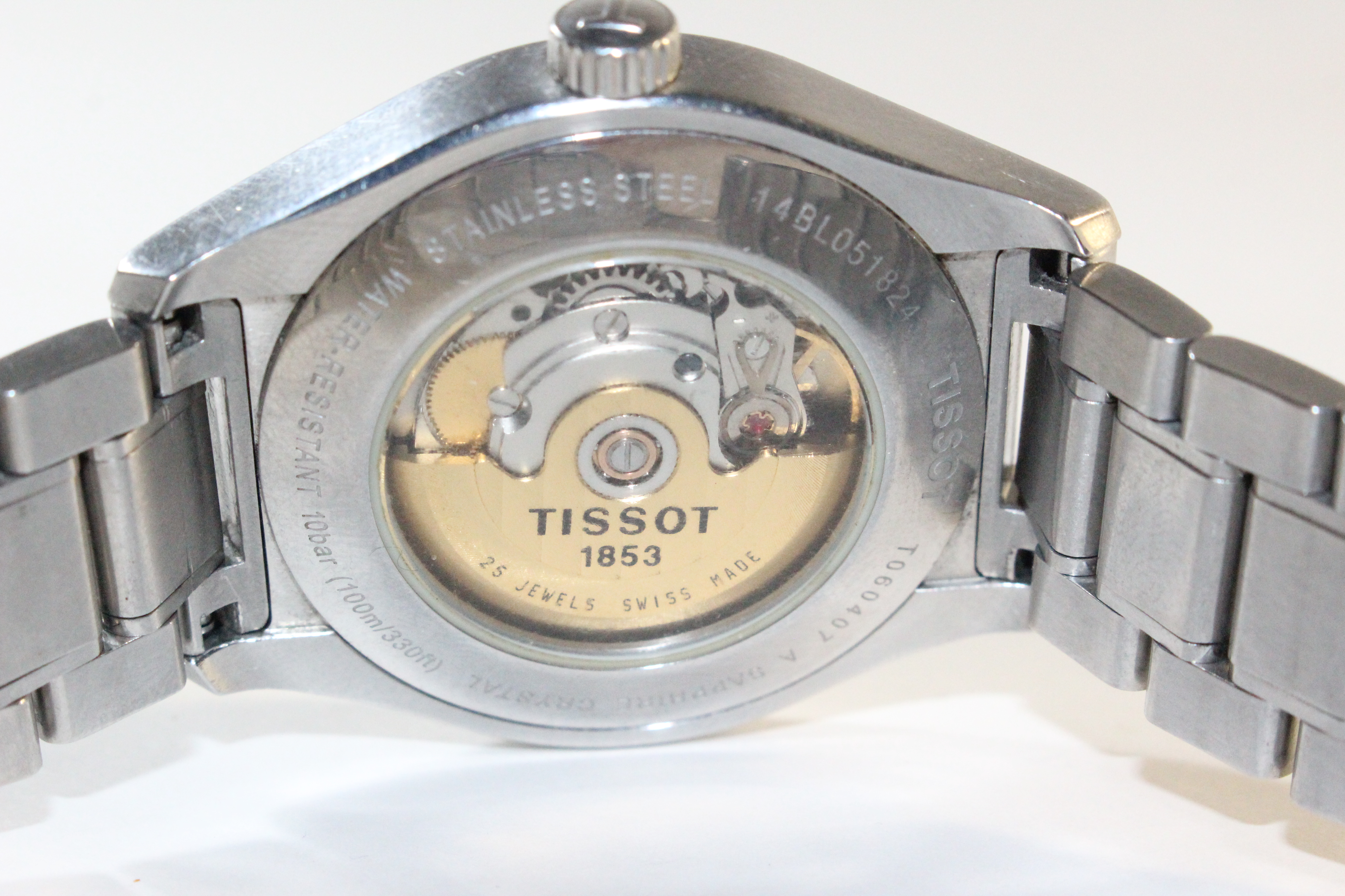 механизм механический с автоподзаводом, корпус: нержавеющая сталь, 39 мм, сапфировое стекло, 100 м, браслет металлический